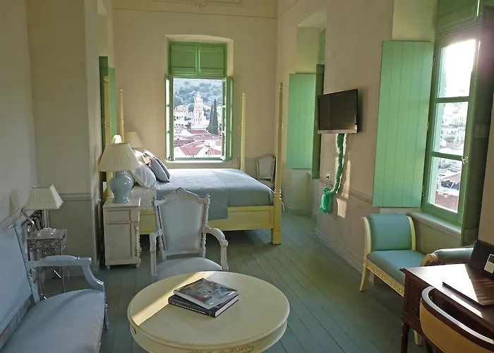 Het 4-sterrenhotel is gevestigd op 3 km afstand van de Baai van Sint George en op 10 minuten rjden van het Toli-strand. Old Markets Sými is ook vlak om de hoek van het Klooster van de Aartsengel Michaël gesitueerd. De nabijgelegen culturele ervaring omvat het Archeologisch Museum van Symi, dat op 1 km afstand ligt.